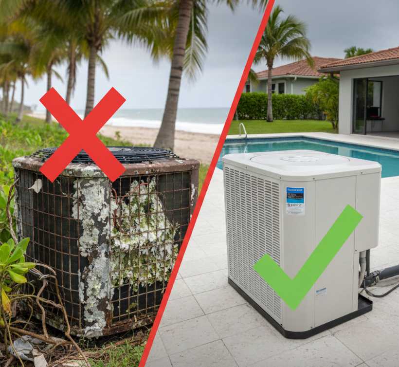 Areas: South Beach, Brickell, Coral Gables, Key Biscayne. The villain here is Salt-Air Corrosion. Salt particles act like sandpaper on your aluminum fins. Once that “white rust” appears, your unit loses its ability to transfer heat.